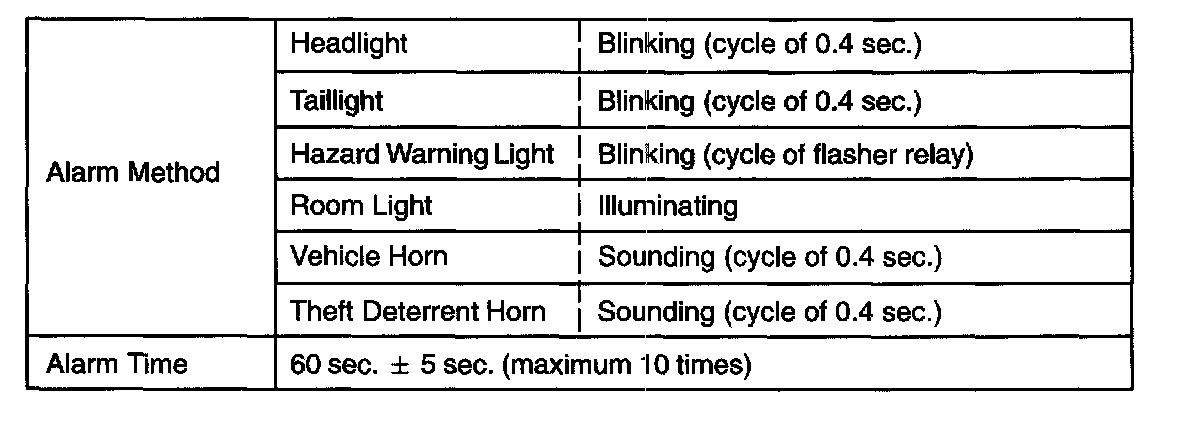a. The forced door lock control prevents the vehicle from being tampered with. Immediately after a door is unlocked (alarm starts), the door is forced to lock by a forced door lock signal.
