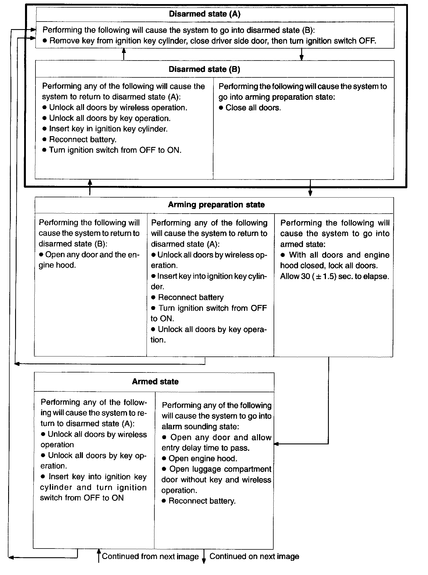 b. The theft deterrent system has 2 modes; one is active arming mode and the other is passive arming mode. Passive arming mode can be switched ON/OFF by the specified method (See step 6).
