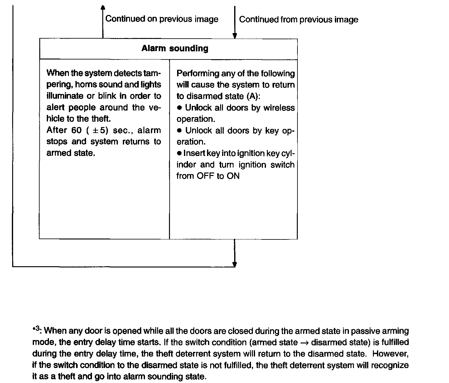 - When the theft deterrent system detects that the doors are opened during passive arming mode, the alarm is not set off immediately because an entry delay time is set.