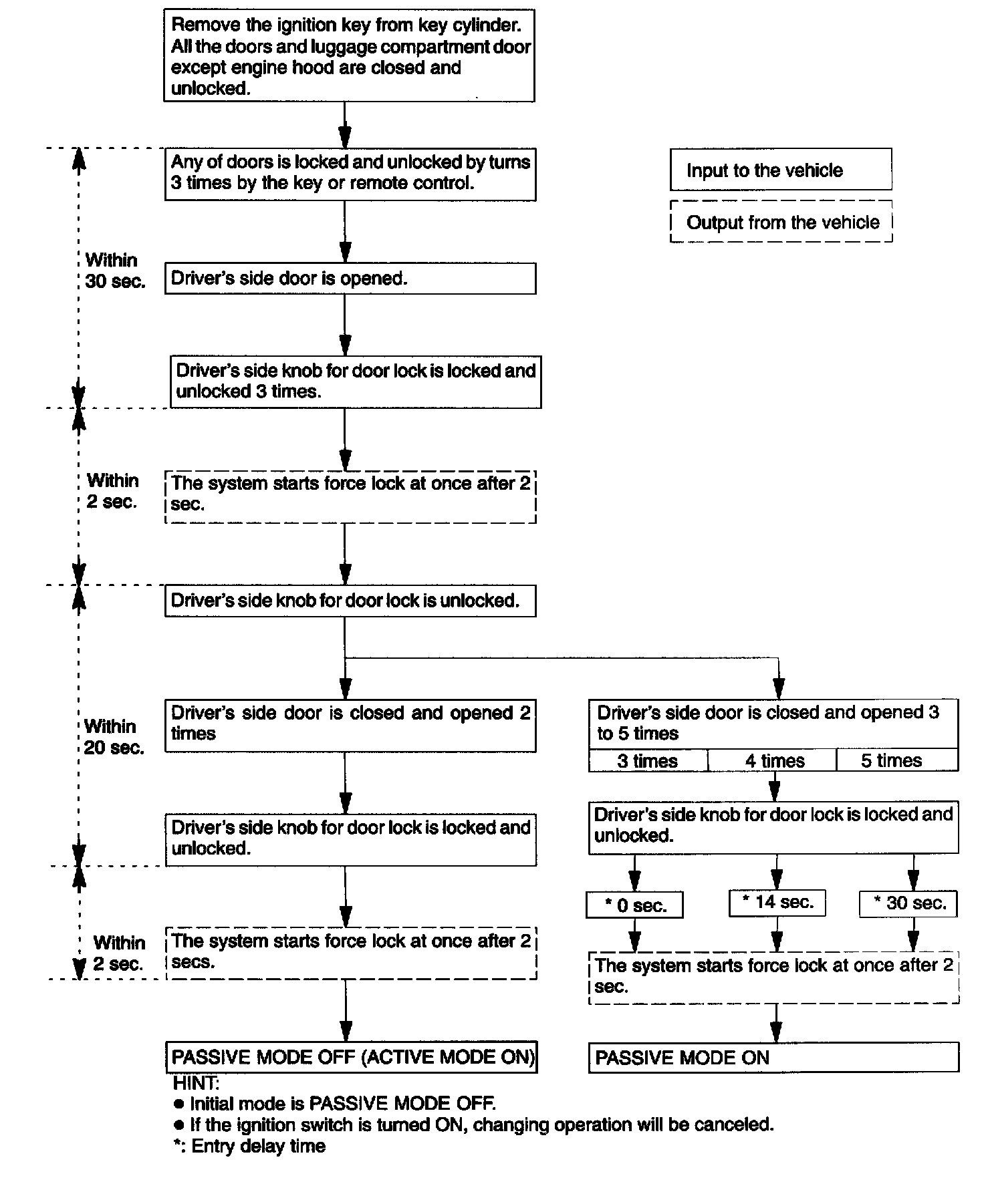 - A forced door lock signal is not output during passive arming mode (See step 4).