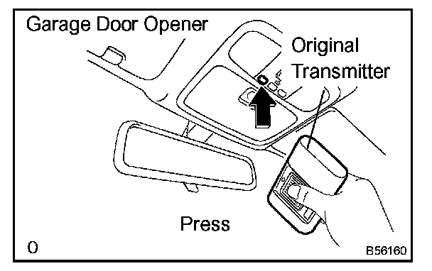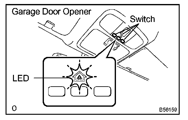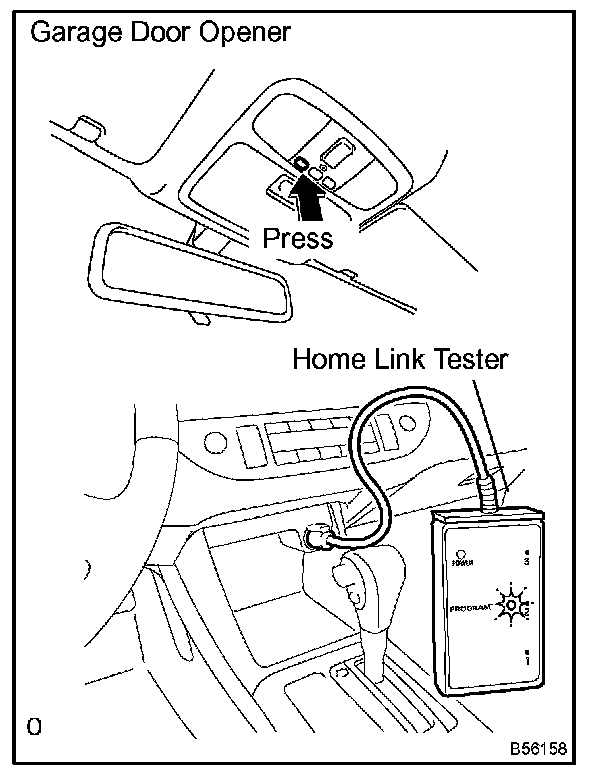 HINT: Use the home link tester made by KENT MORE for this test. As it is necessary to register the transmitter code of the home link tester, erase the customer's code. When the inspection completes, please register the customer's code again.