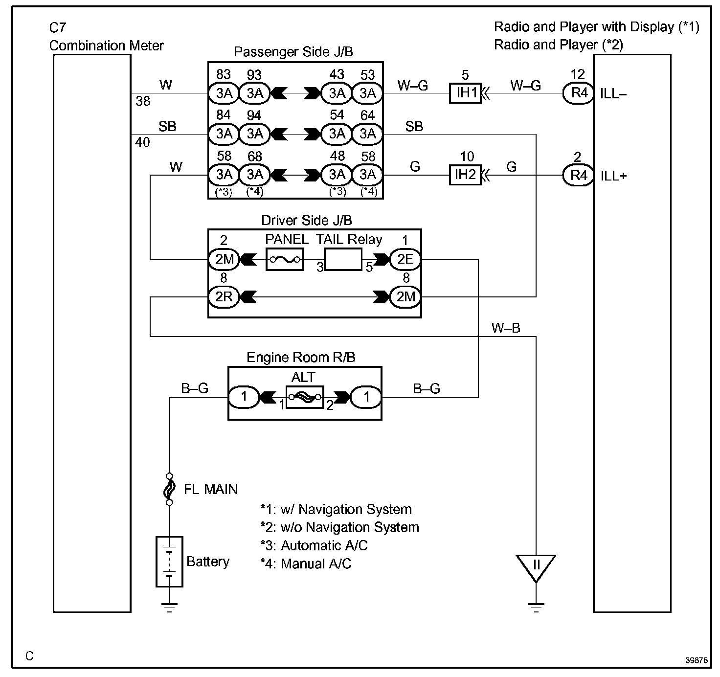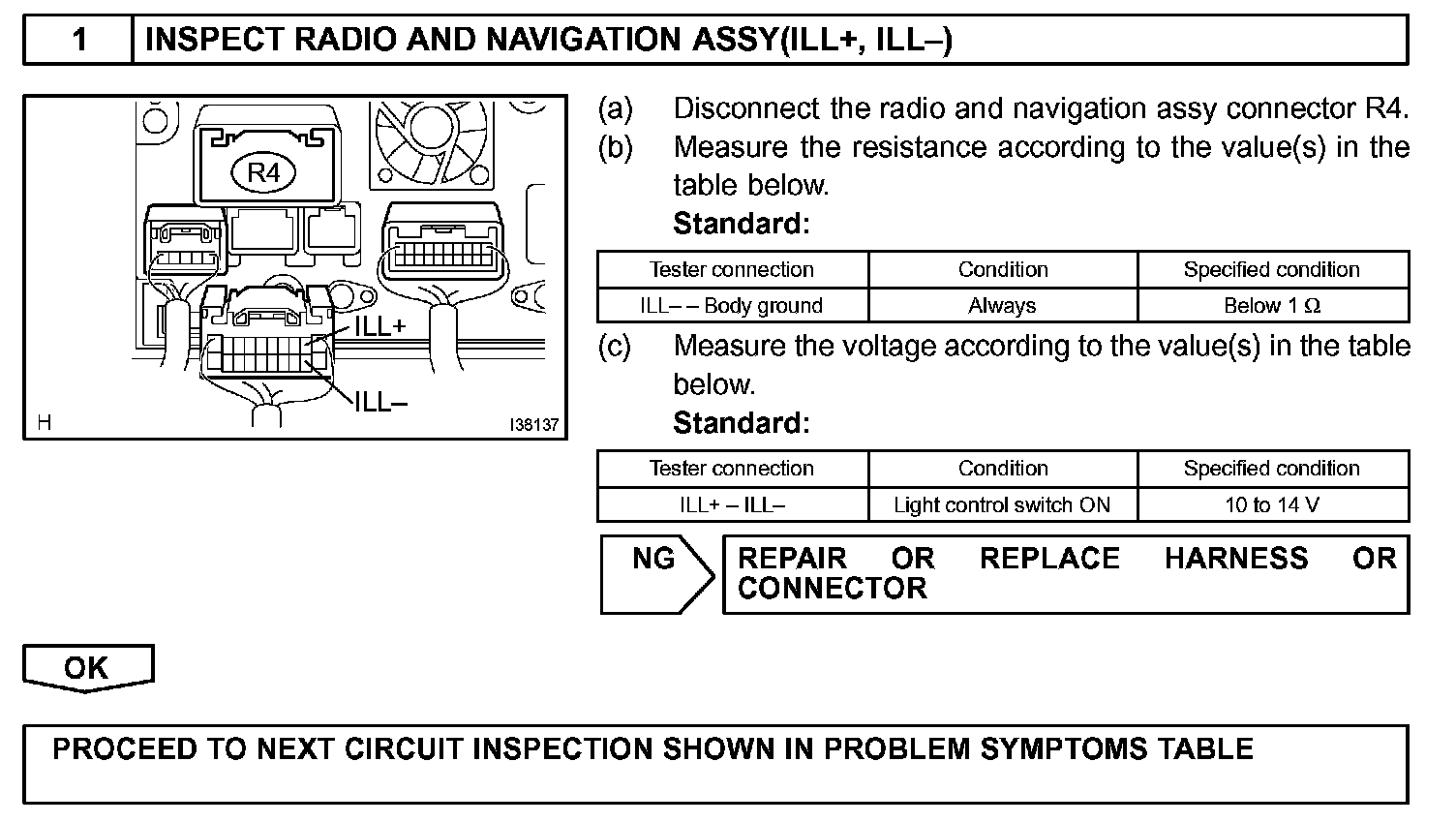 Receiving the dimmer signal from the tail relay, the radio and navigation assy dims the display and illuminates the panel switches.