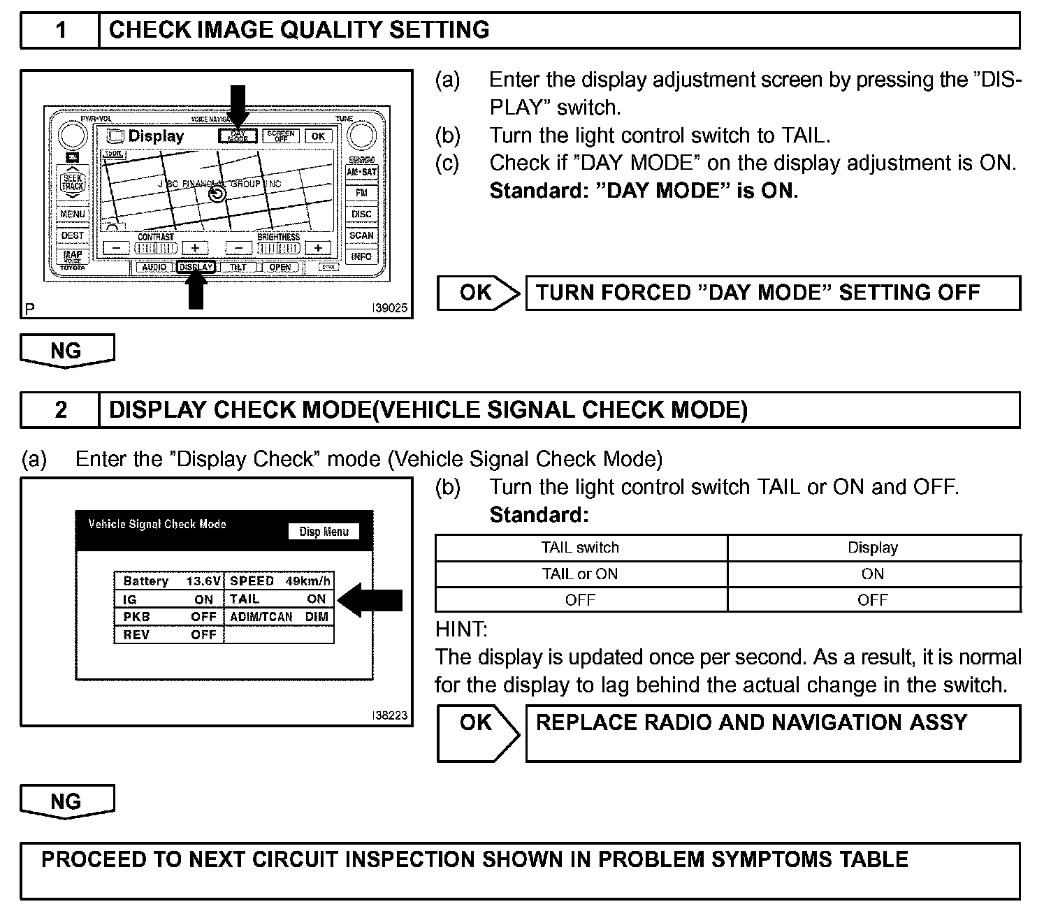 DISPLAY DOES NOT DIM (NIGHT SCREEN) WITH TAIL SWITCH ON