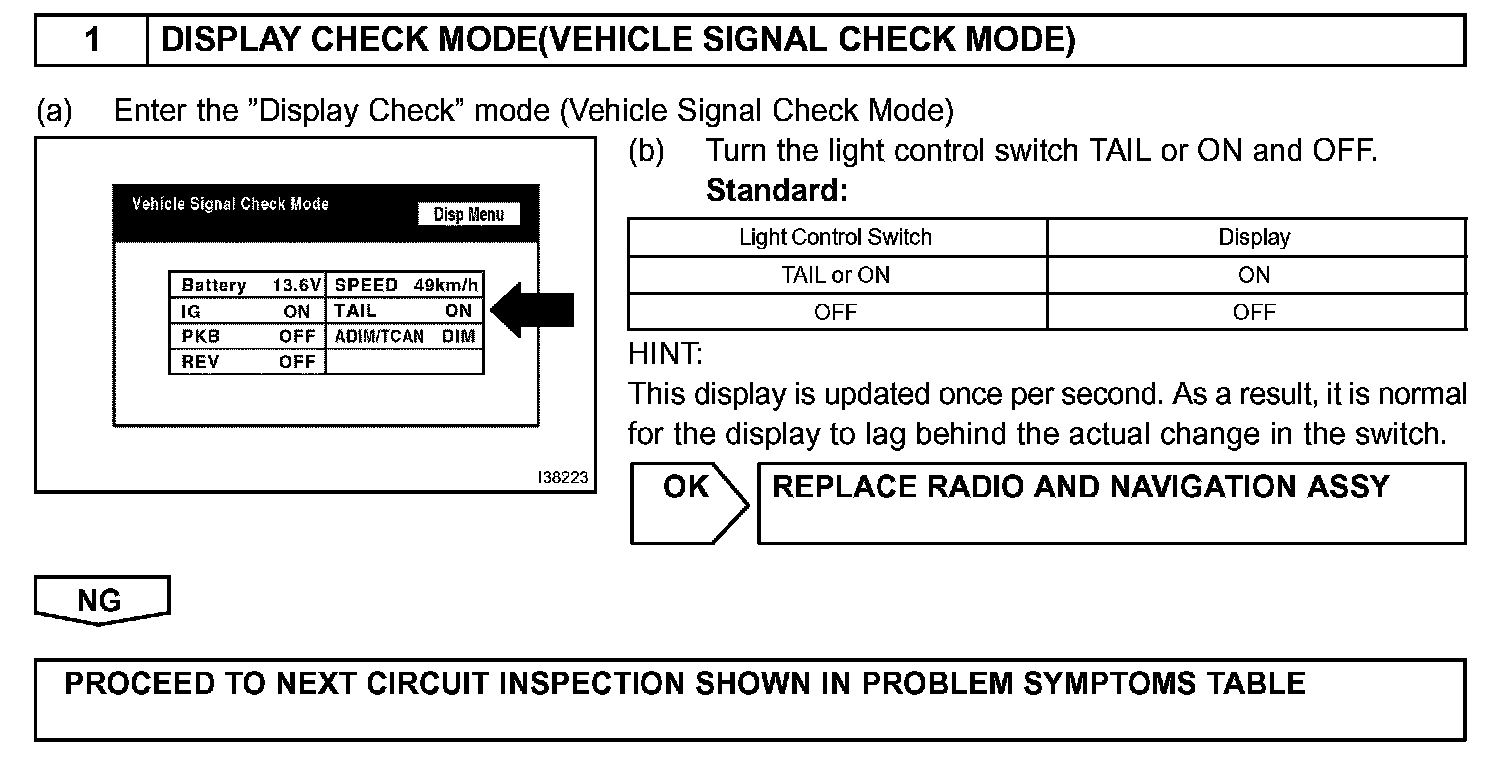Illumination For Panel Switch Does Not Come On (Tail Switch On)