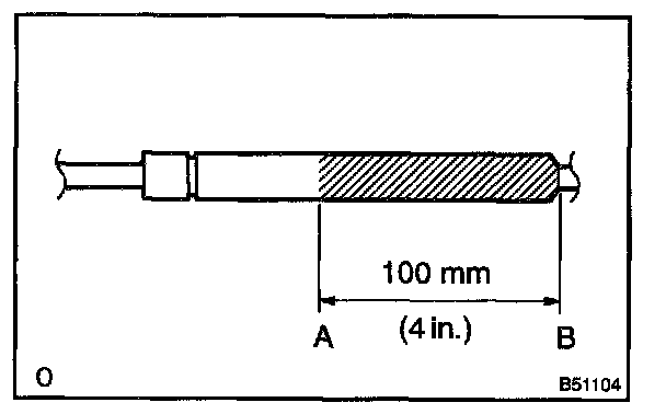 a. Fix the hood stay assembly, with the piston-rod pulled out, on a vise.