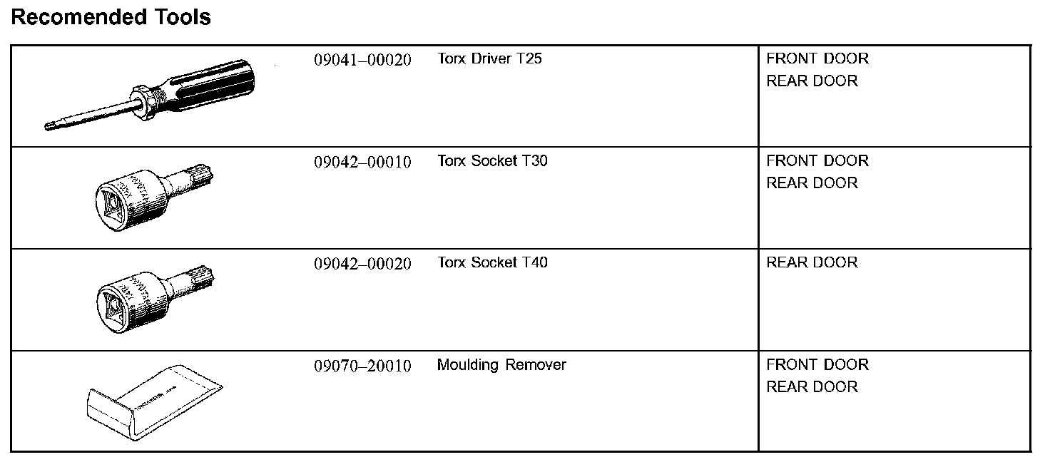 Doors, Hood and Trunk: Tools and Equipment