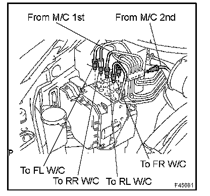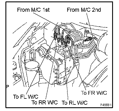 (c) Using SST connect the each brake line to the correct position of brake actuator as shown in the illustration.