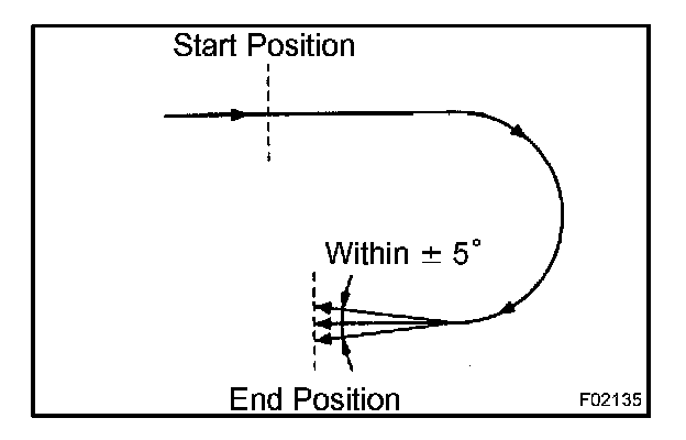 1. Shift the shift lever to the D position and drive the vehicle at a speed of approx. 3 mph (5 km/h), turn the steering wheel either to the left or right 90 ° or more, and maintain a 180 ° circular drive for the vehicle.