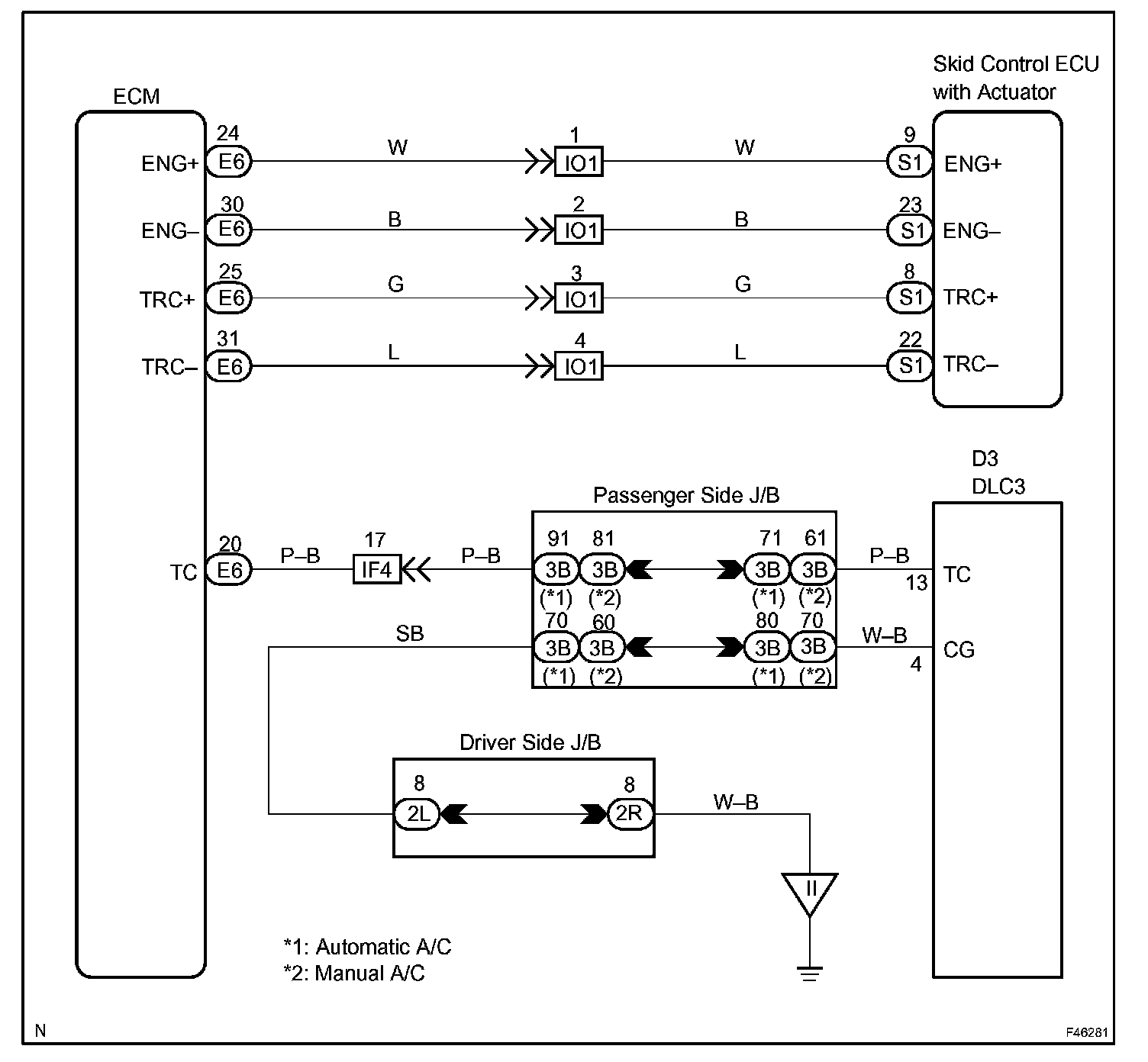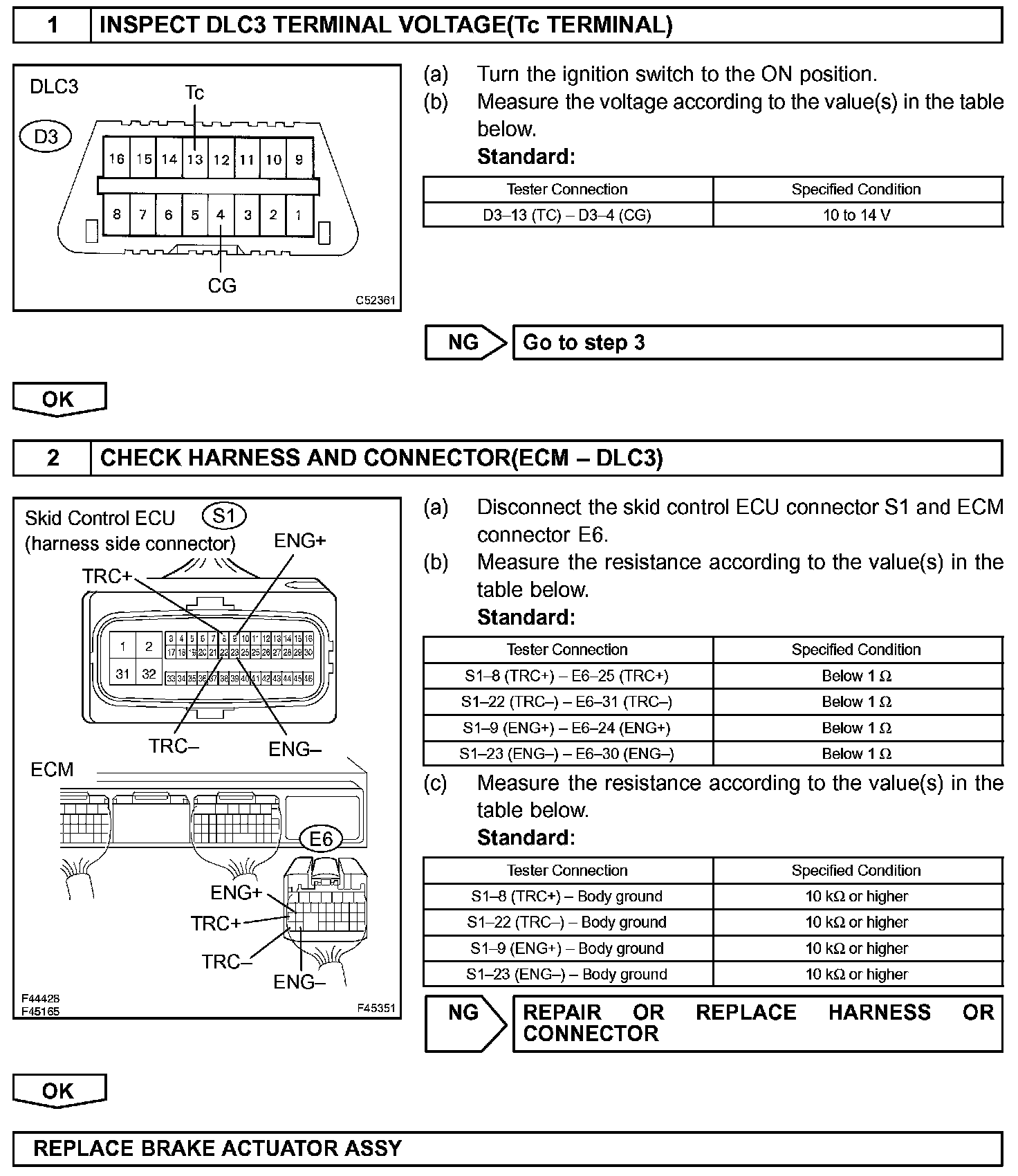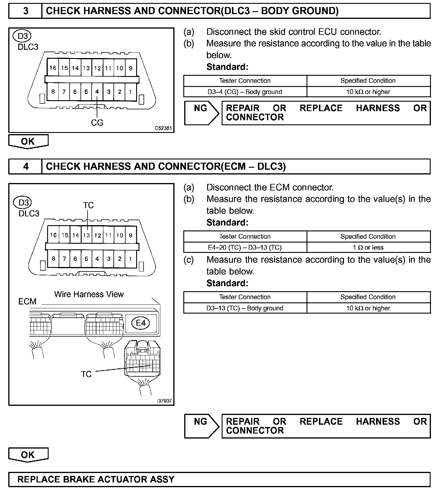Connecting terminals Tc and CG of the DLC3 causes the ECU to display the DTC by blinking the ABS warning light.