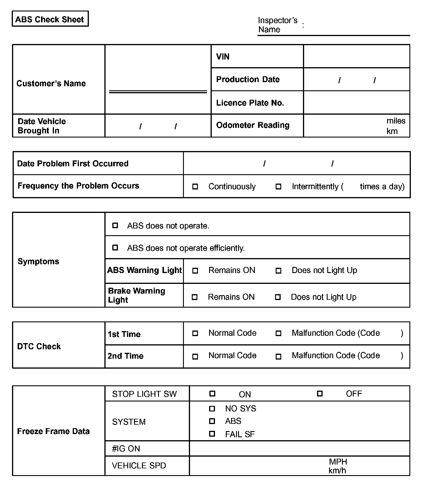 ABS Check Sheet:
