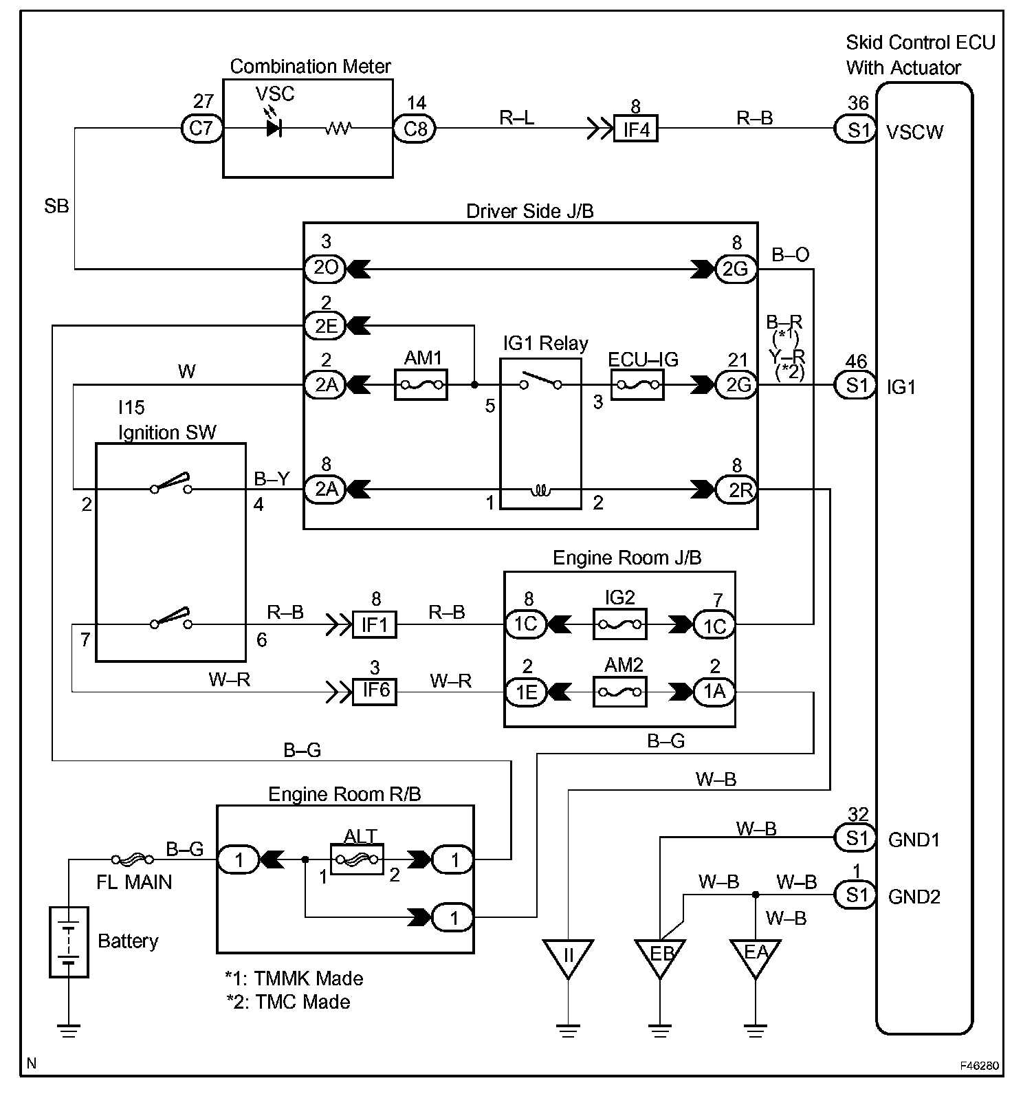 VSC WARNING LIGHT CIRCUIT (REMAINS ON)