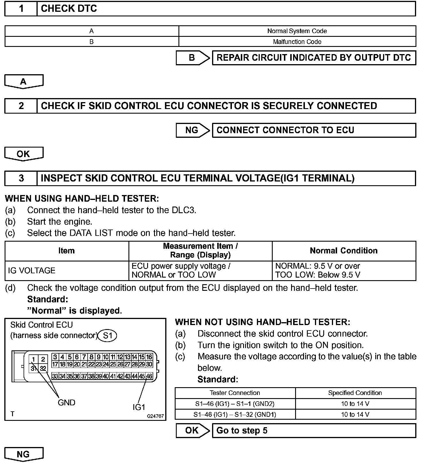 HINT: Start the inspection from step 1 when using the hand-held tester and start from step 2 when not using the hand-held tester.