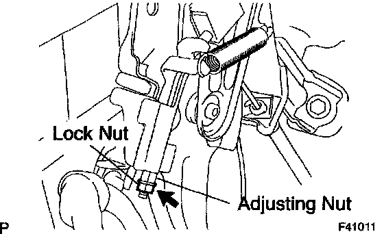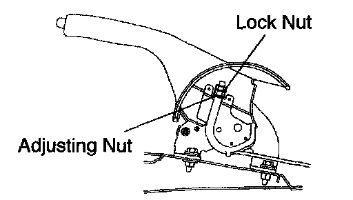 c. Loosen the lock nut and turn the adjusting nut until the lever travel is correct.