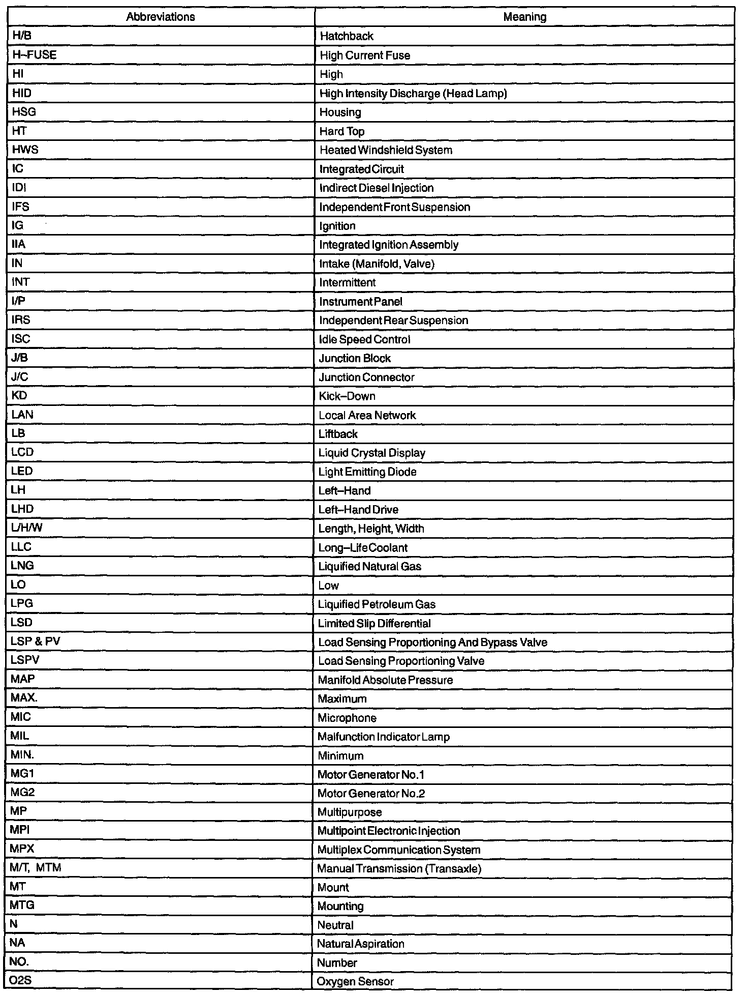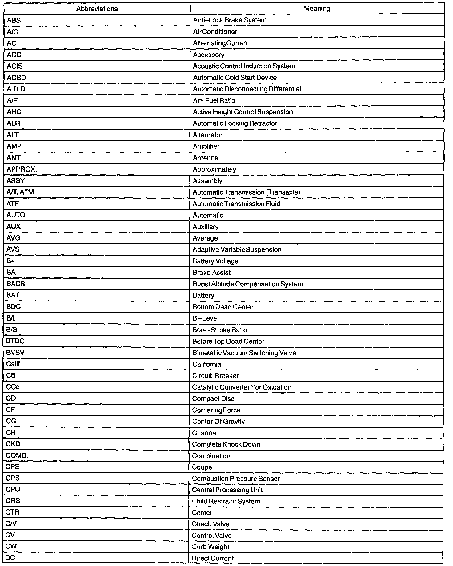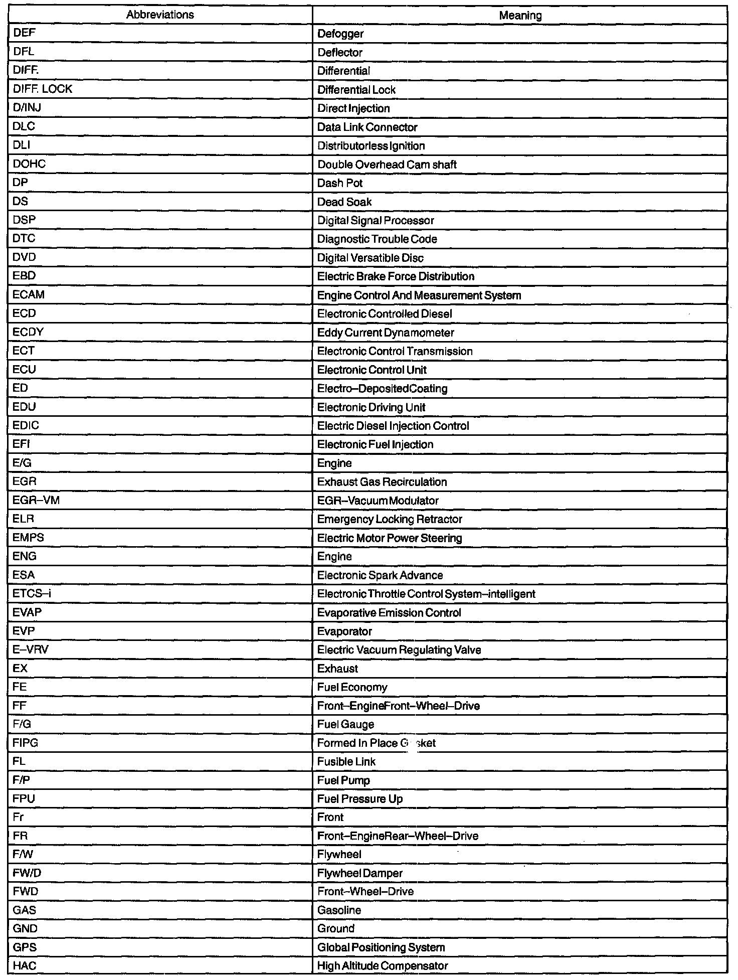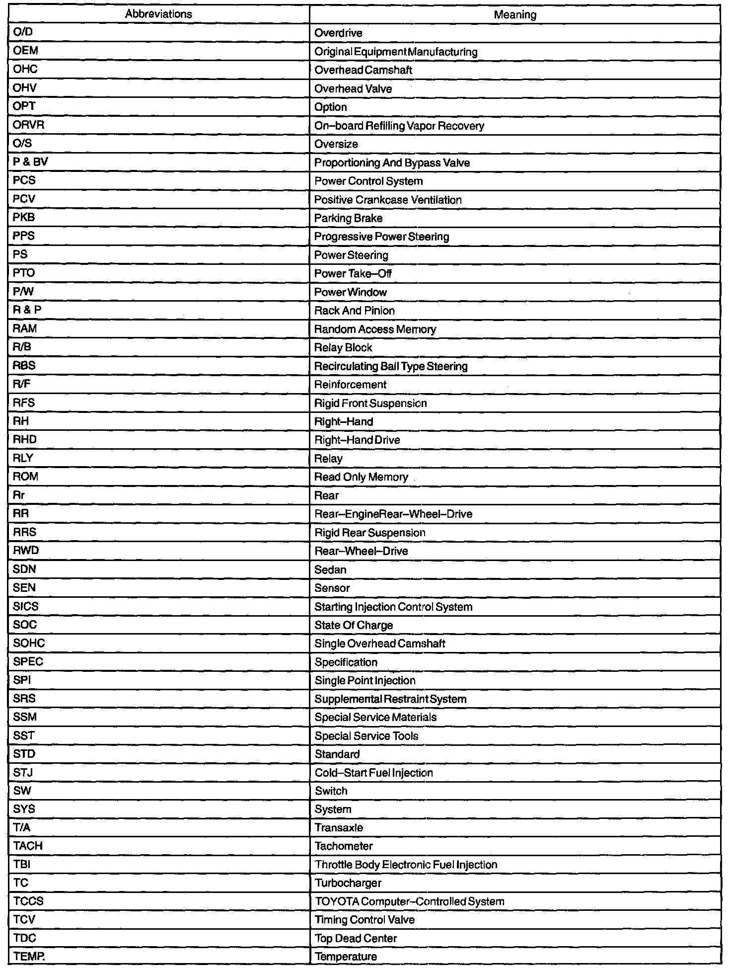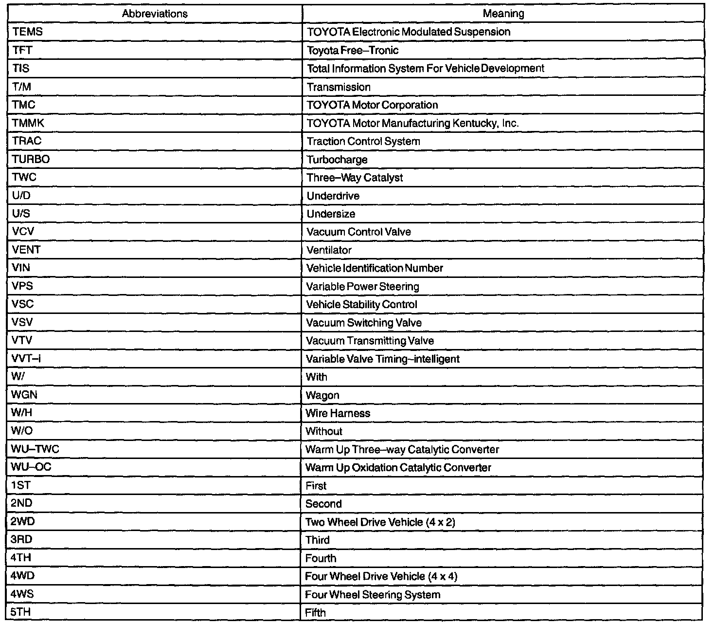 Abbreviations Used By TOYOTA