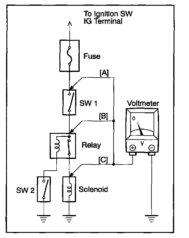 This check can be done with a test light instead of a voltmeter.