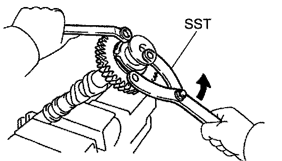 b. Using SST, turn the sub-gear counterclockwise, and remove the service bolt.