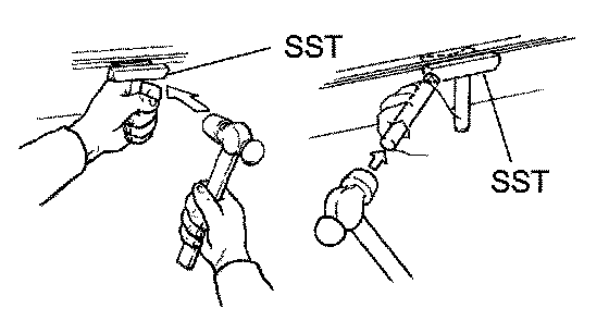 a. Using SST and a hammer, tap in a new gasket until its surface is flush with the upper edge of the cylinder head cover.