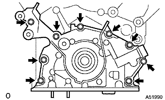 e. Install the oil pump with the 9 bolts. Tighten the bolts uniformly in several steps.