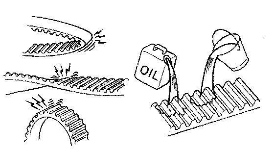 ^ Do not allow the timing belt to come into contact with oil, water or steam.