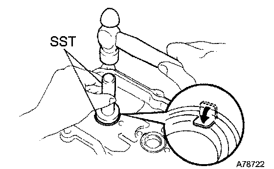 a. Using SST and a hammer, tap in a new oil seal until its surface is flush with the rear oil seal retainer edge.