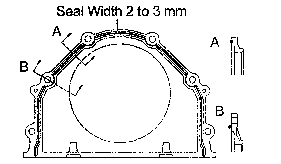b. Apply a continuous bead of seal packing (diameter 2 to 3 mm (0.08 to 0.12 inch)) as shown in the illustration.