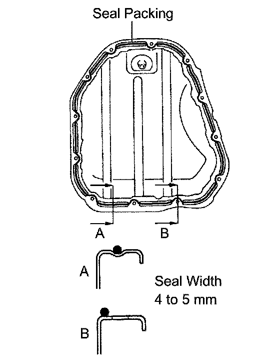 b. Apply a continuous bead of seal packing (diameter 4 to 5 mm (0.16 to 0.20 inch)) as shown in the illustration.