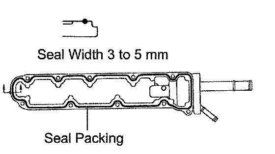 b. Apply a continuous bead of seal packing (diameter 3 to 5 mm (0.12 to 0.20 inch)) as shown in the illustration.