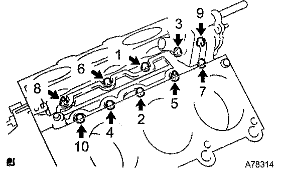 i. Uniformly tighten the 10 bearing cap bolts in the sequence shown in the illustration.