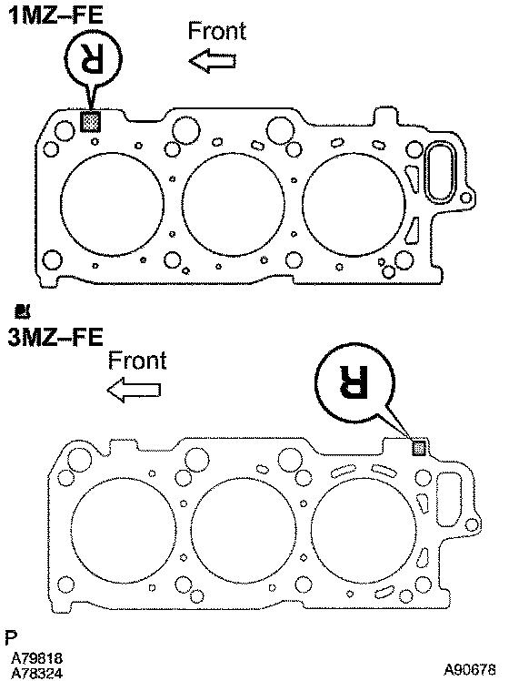 a. Place a new cylinder head gasket on the cylinder block with the R mark upside down, as shown in the illustration.