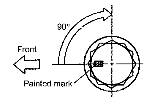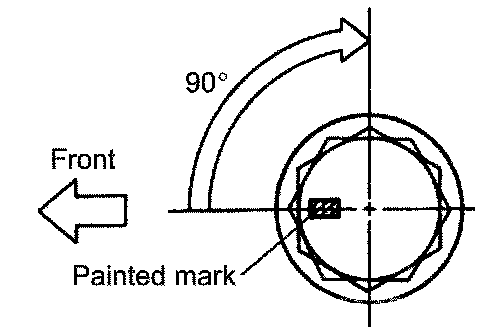 d. Mark the front side of each cylinder head bolt head with paint as shown in the illustration.