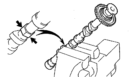 a. Clamp the camshaft in a vise on the hexagonal lobe.
