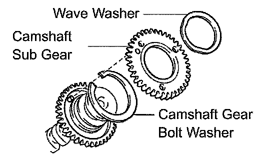 b. Install the camshaft gear bolt washer and the camshaft sub-gear.