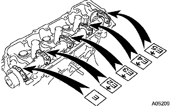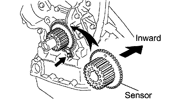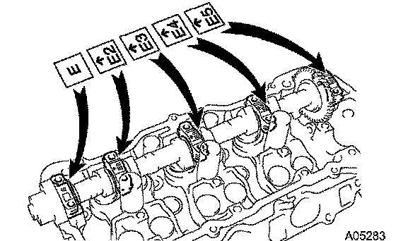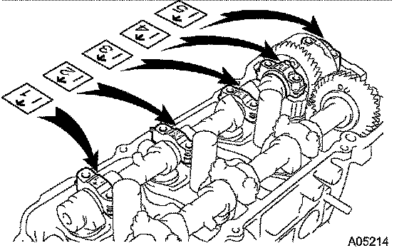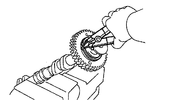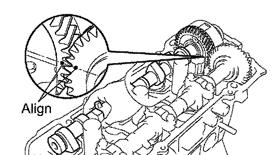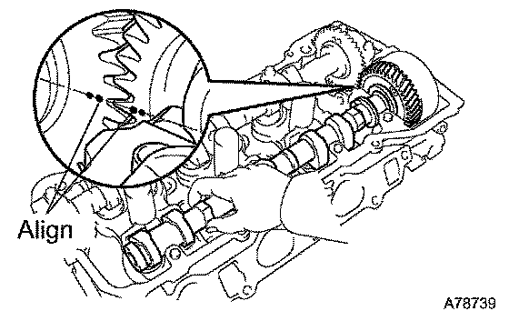 HINT: When installing the camshaft, make certain that the torsional spring force of the sub-gear has been eliminated by installation of the service bolt.