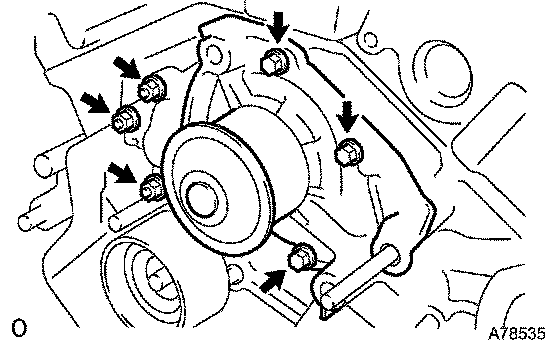 1. Turn the pulley, and check that the water pump bearing moves smoothly without any noise.