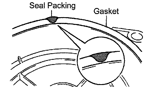 NOTICE: When applying the seal packing, apply it as wide and high as the gasket.