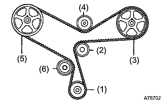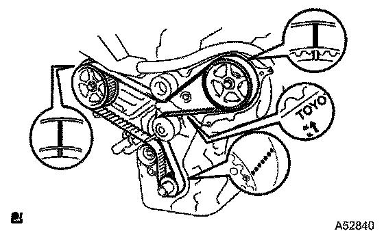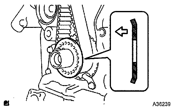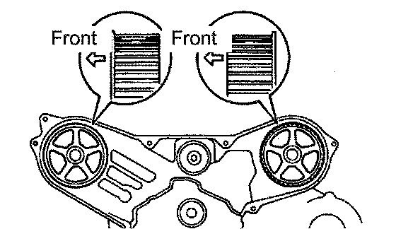 ^ If there is a trace of water and/or oil on the timing belt, repair the leakage and install a new timing belt.