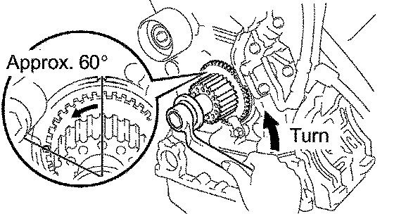 e. Turn the crankshaft counterclockwise by approximately 60°.