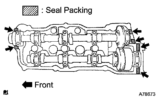 b. Apply seal packing to the cylinder head as shown in the illustration.