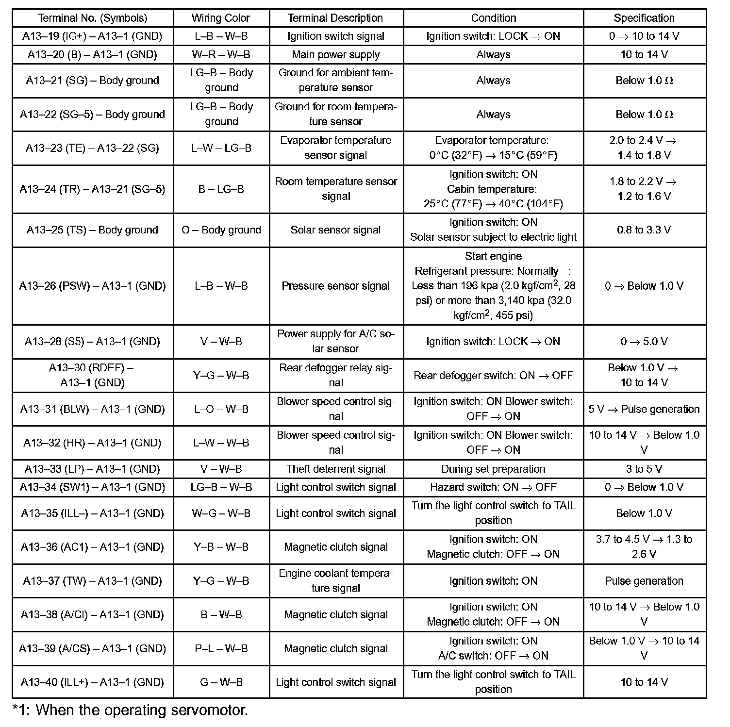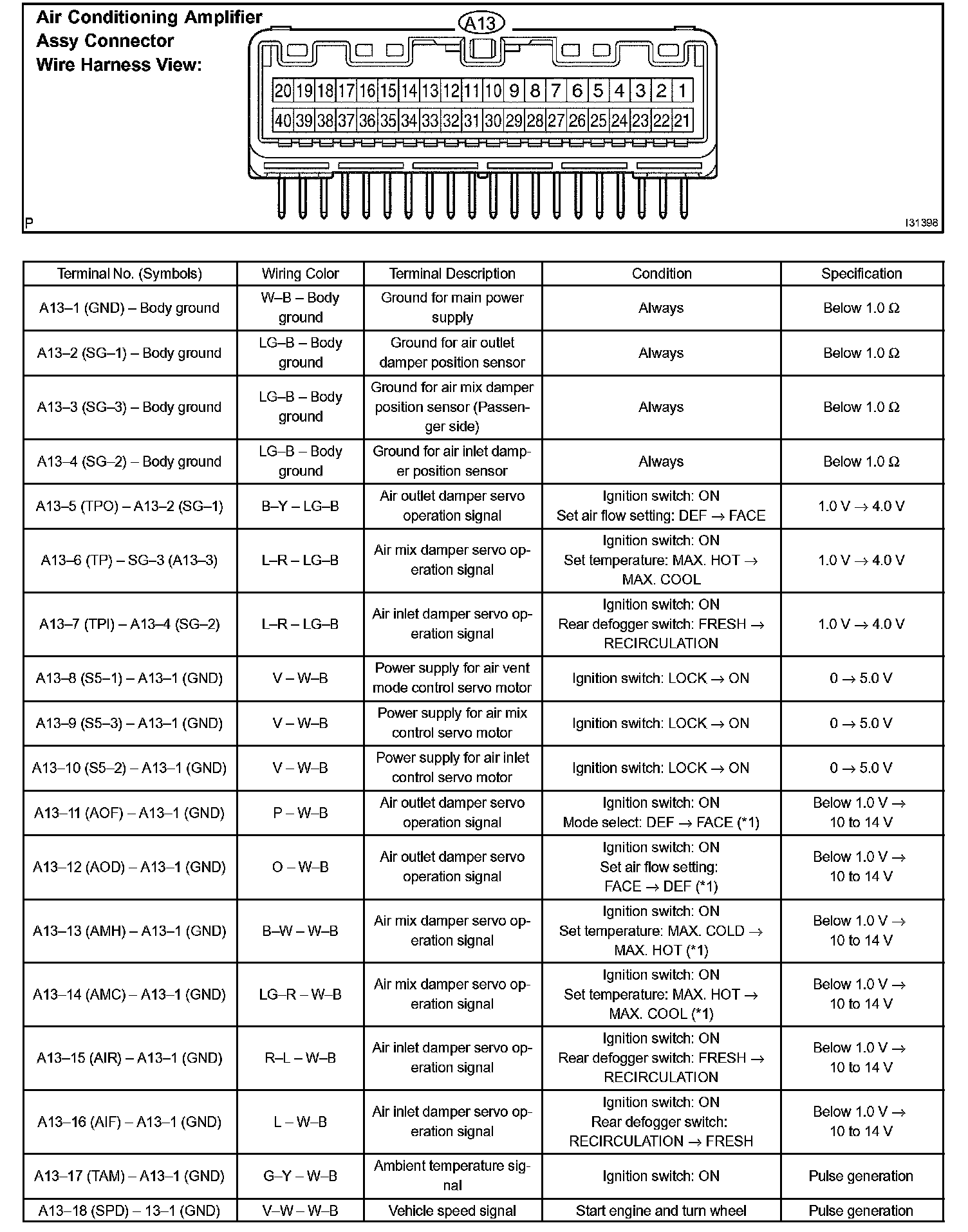 Terminals Of ECU/Pinouts - Heater Control Housing Sub-Assy (A/C Amplifier) Part 1: