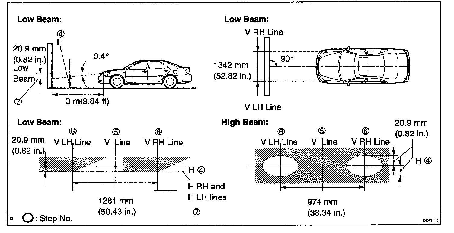 - As shown in the illustration, adjust each aim of the RH and LH lights.