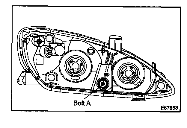 Using adjusting bolt A, adjust the headlight aim to be within the specified range.