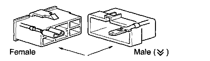 S: Indicates the reference describing the wiring harness and wiring harness connector (the female wiring harness is shown first, followed by the male wiring harness).
