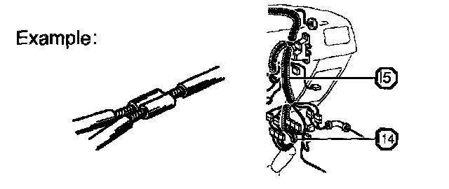 C: ( ) is used to indicate different wiring and connector, etc. when the vehicle model, engine type, or specification is different.
