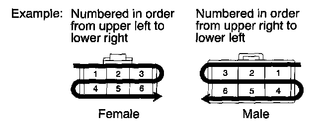 The numbering system is different for female and male connectors.