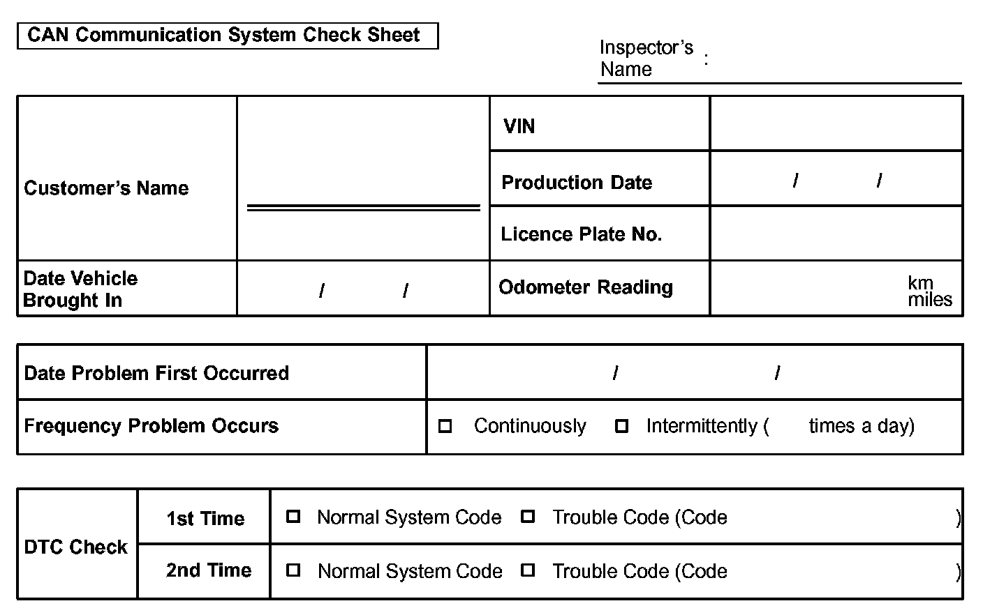CAN Communication System Check Sheet: