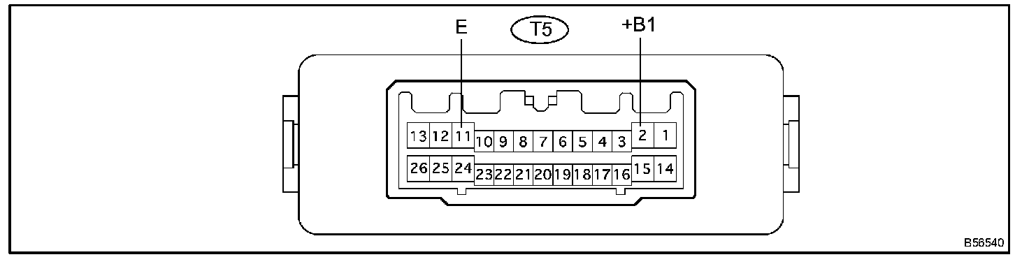 a. Disconnect the T5 theft warning ECU (theft deterrent ECU) connector and check the voltage and continuity of each terminal of the wire harness side connector.
