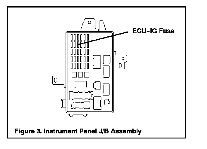 1. Remove the 10A ECU-IG fuse from the Instrument Panel Junction Block assembly. This action prevents possible activation of the ABS relay, resulting in ECM Reprogramming failure.