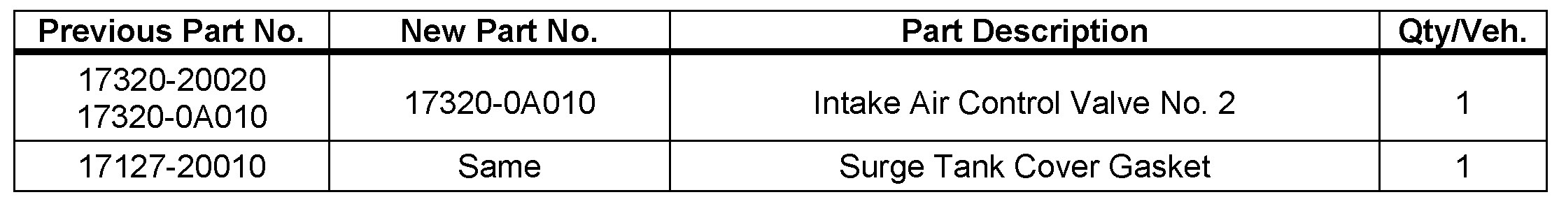 If Yes -- Replace the Intake Air Control Valve. Refer to ETAS, 2004 model year Applicable Model Repair Manual: Section: Intake; Subsection: Intake Air Control Valve Assy No. 2 (3MZ-FE); Replacement.