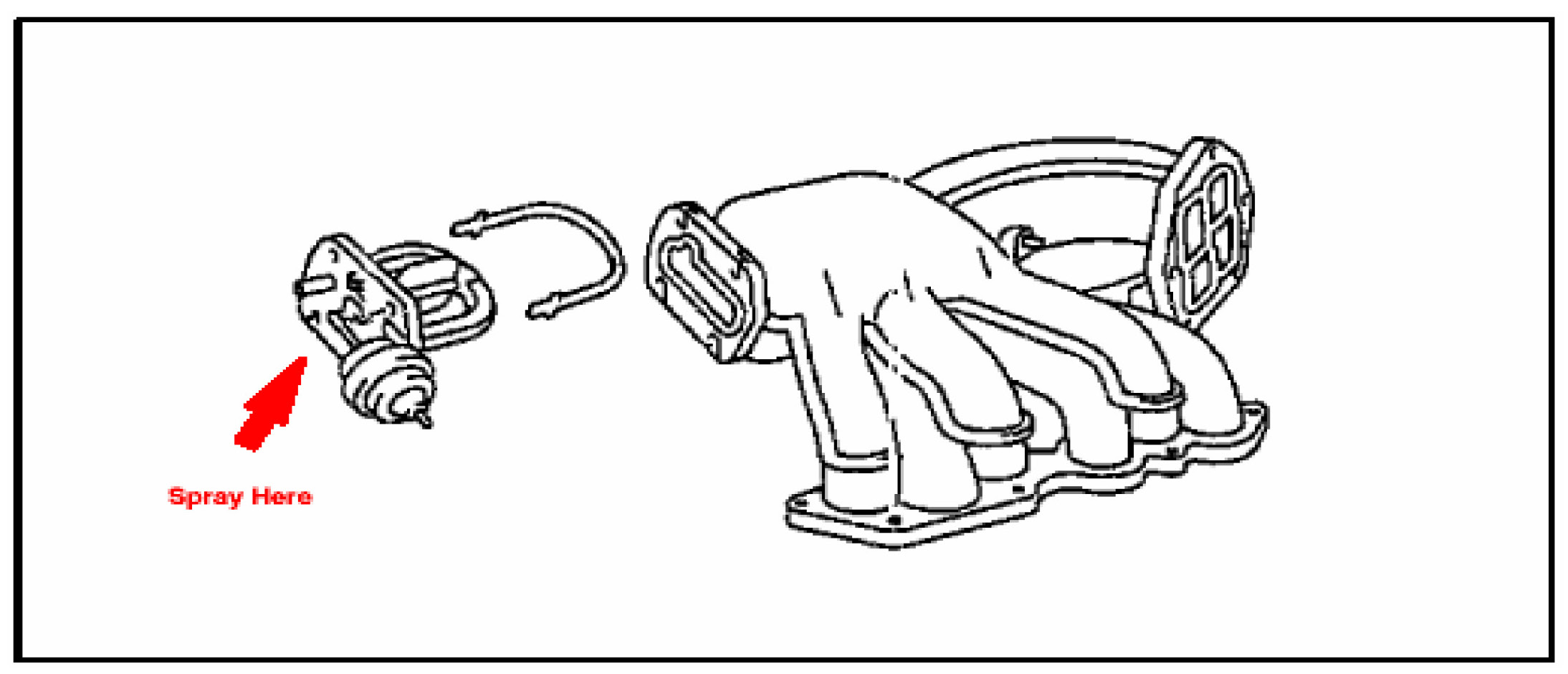 2. Spray carburetor cleaner near the Intake Air Control Valve pivot shaft and monitor Short Term Fuel Trim as indicated in step 1.