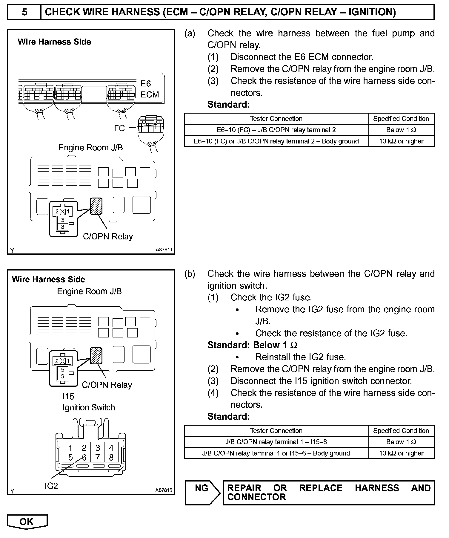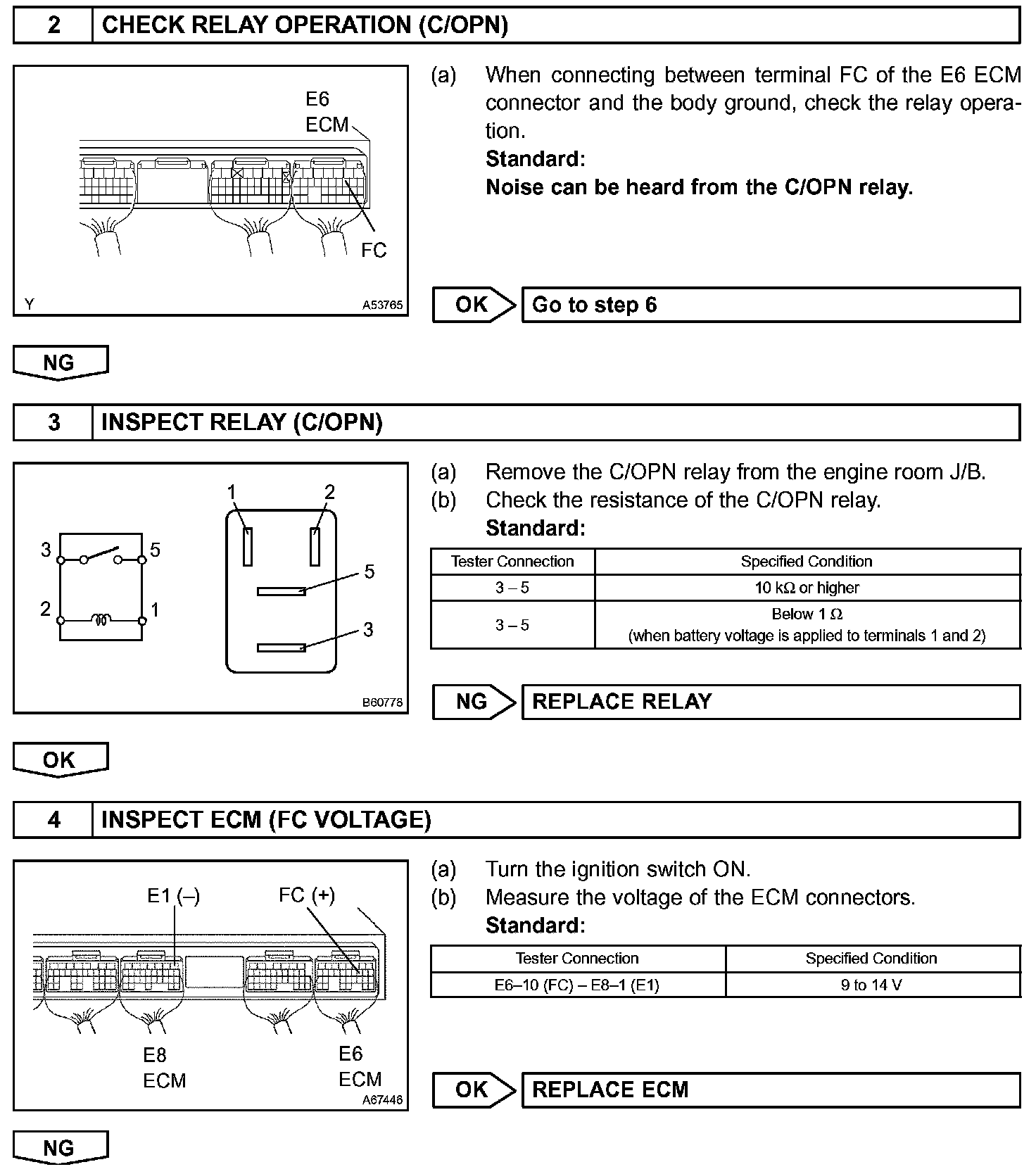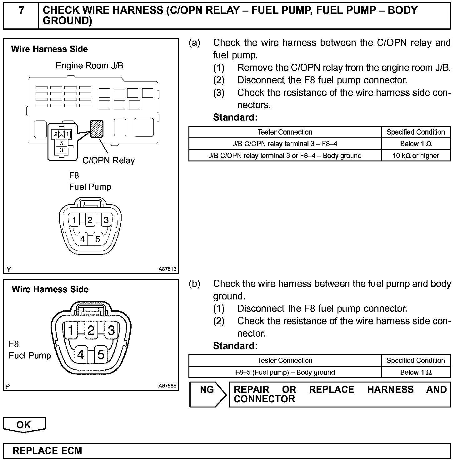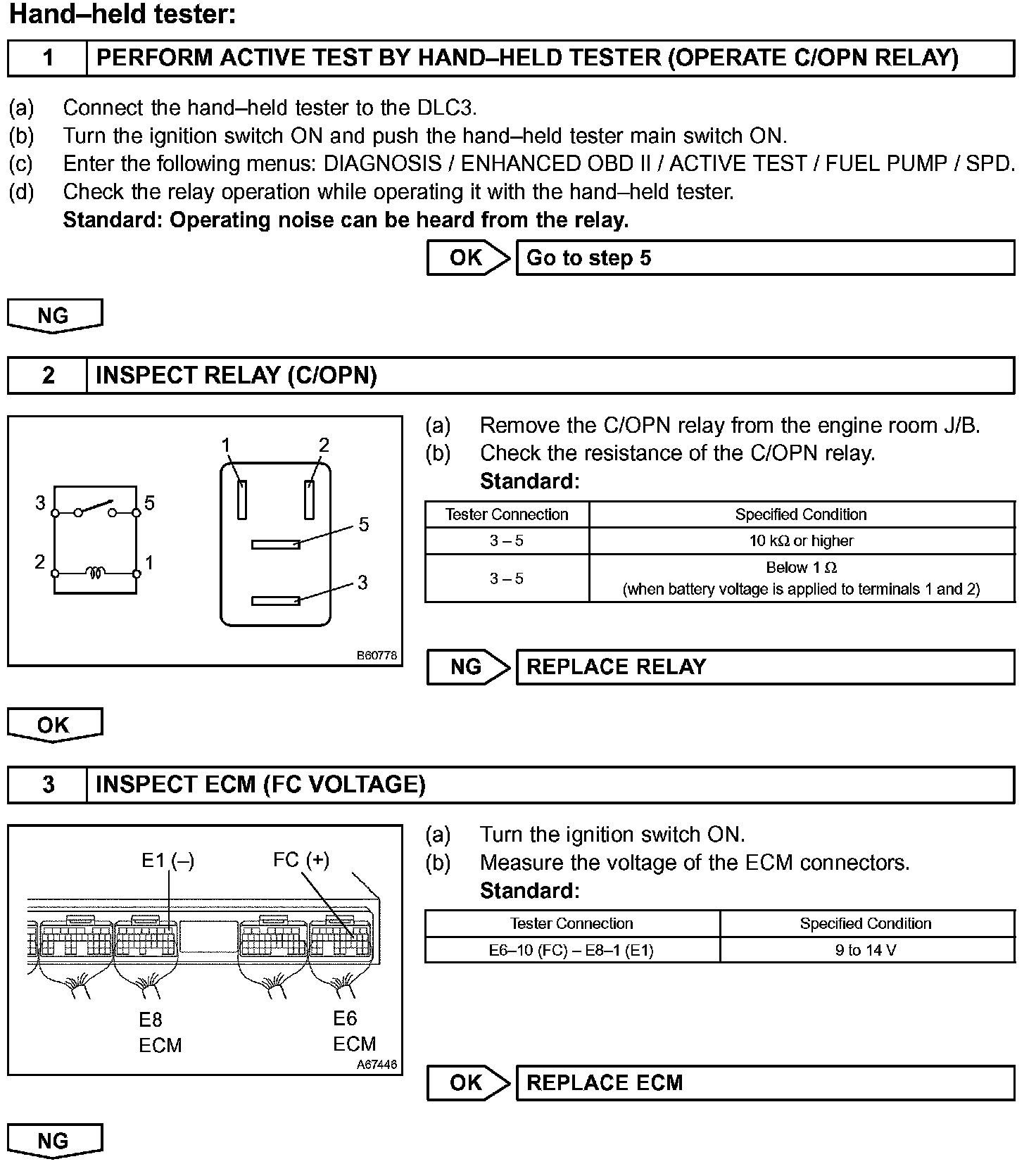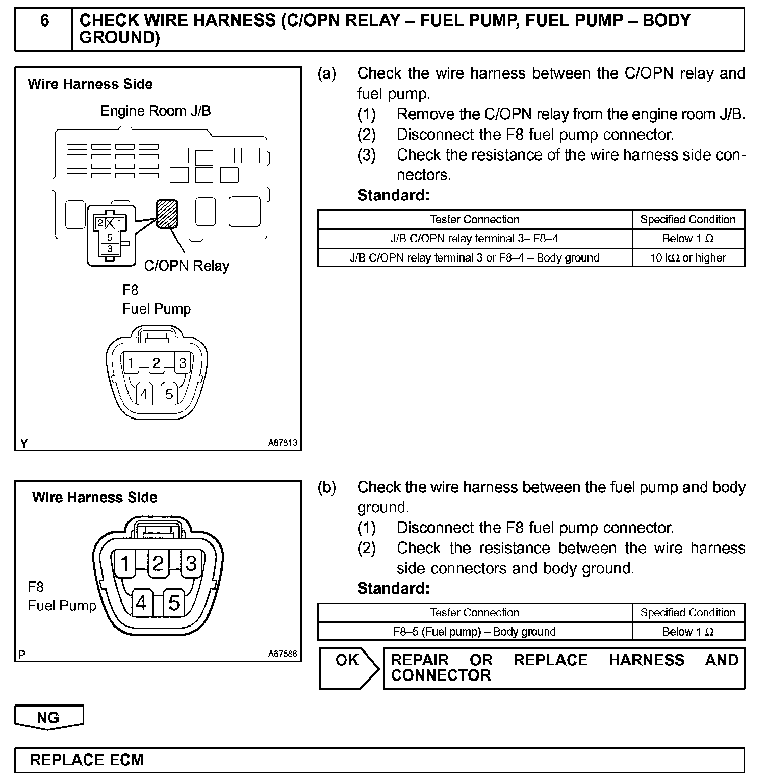 While the NE signal is generated and the engine is running, the ECM keeps Tr ON (C/OPN relay ON) and the fuel pump also keeps operating.